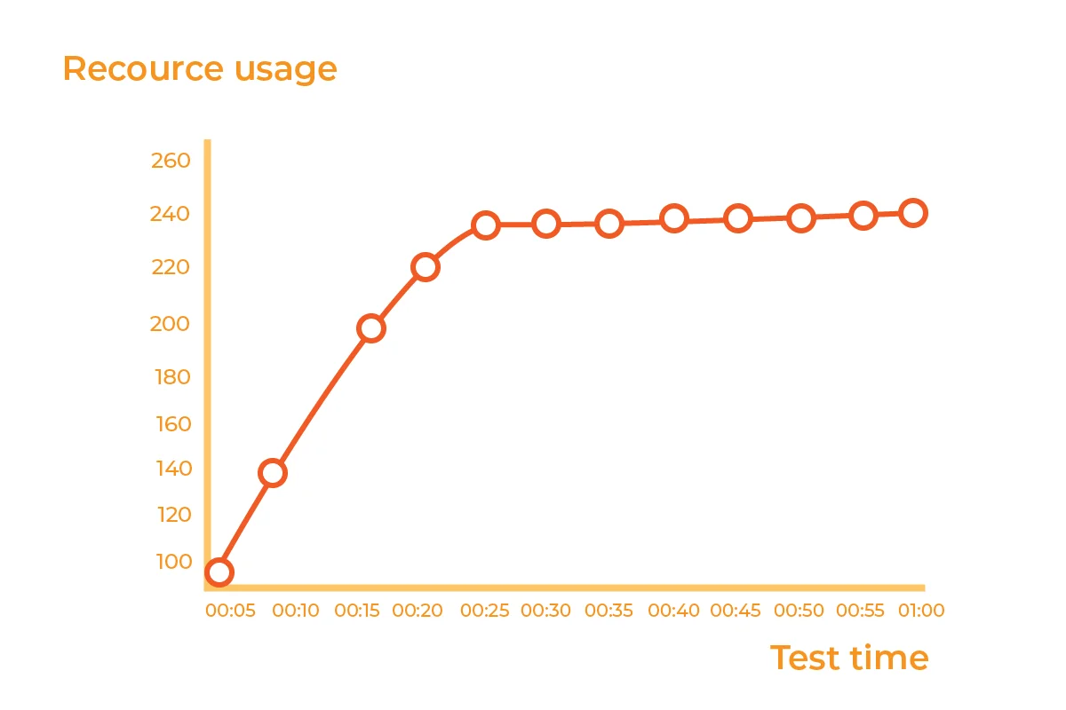 - Pri tomto type testovania môžeš simulovať stály tok používateľov na tvojej stránke po dobu niekoľkých dní alebo týždňov. Cieľom je zistiť, či nevznikajú problémy ako úniky pamäte, ktoré by mohli viesť k spomaleniu alebo zlyhaniu stránky po dlhodobom používaní.